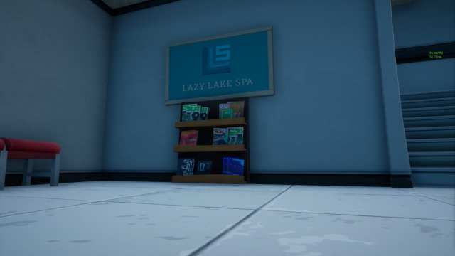 Go to the Lazy Lake Spa building in the southwest corner of Lazy Lake and head down the ramp to the below-ground parking lot on its east side.