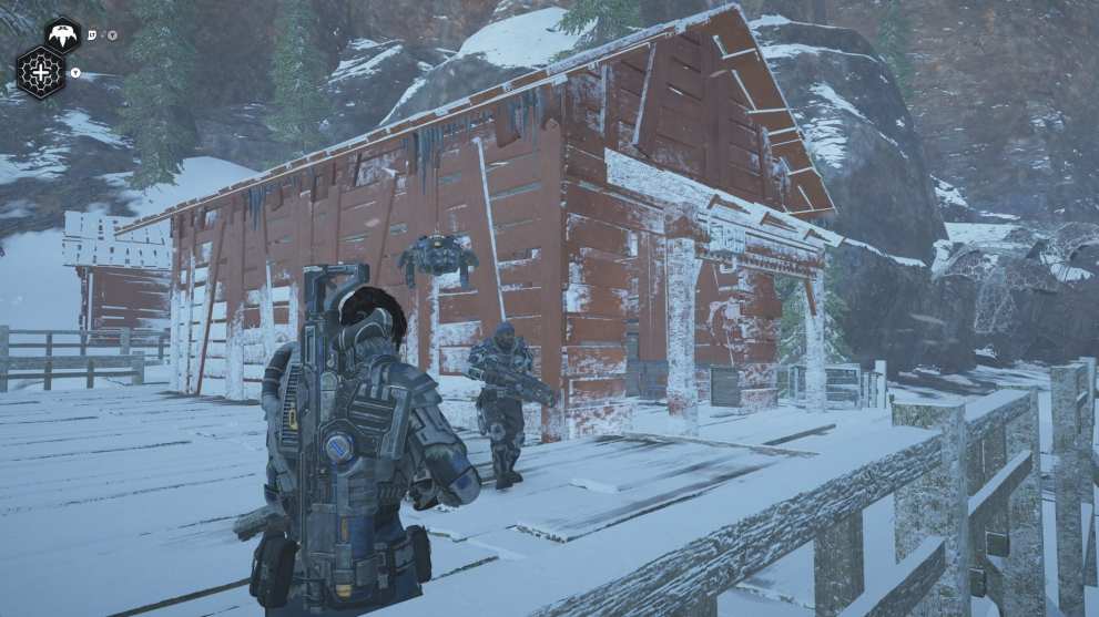 When you’re looking for the location of the transmission signal source in Act 2’s ‘The Source of It All,’ look for a pile of ice nearby. You’ll see a red gear omen on it, and just to the left, you’ll find a gap. Head through the gap and round the corner on the floor you’ll find the Dropshot Relic in Gears 5.