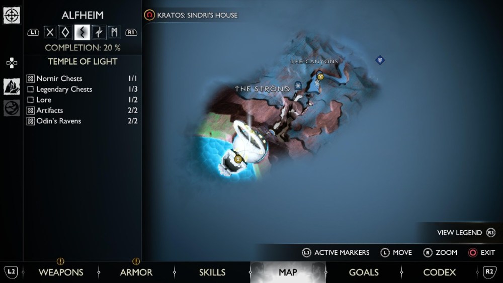 The first Idunn Apple in Alfheim can be found while on the quest Groa’s Secret, located down at the bottom of a ledge you’ll find after squeezing through a crack in the rocks. In order to get the contents of Nornir Chest #1 in this area, you’ll need to light some braziers.