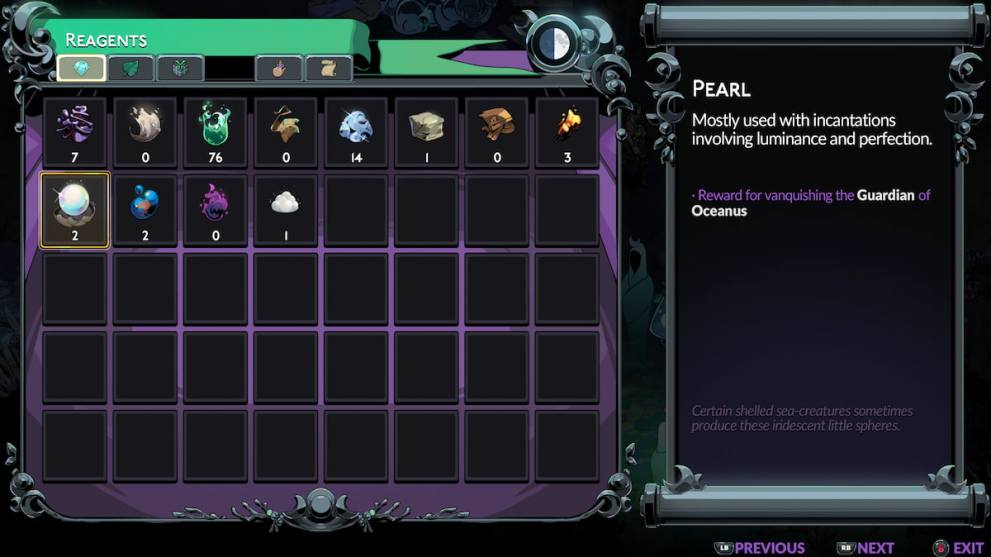 Defeating Scylla and her Sirens will always net you one pearl. There aren’t a lot of use cases for these Pearls, though. One such use later on as you progress is the “Abyssal Insight” incantation, which unlocks the Chaos Trials mode. This trial mode itself provides an additional challenge via certain weapons and boons and rewards you with Star Dust. This is a reagent that can be used to help bond animal familiars and boost Arcana Cards.