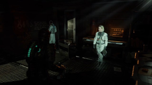 Inside, you’ll find a computer you can interact with. A holo visual recording will play, where we see Mercer intending to use Nicole’s research on Necromorphs to further the development of his indestructible Hunter experiment. Of course, we all know how fun a Hunter is to run into.