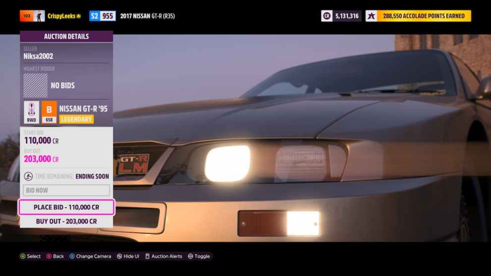 - You can either place a bid, or choose the ‘Buy Out’ option to buy the car immediately, often at a higher price.
