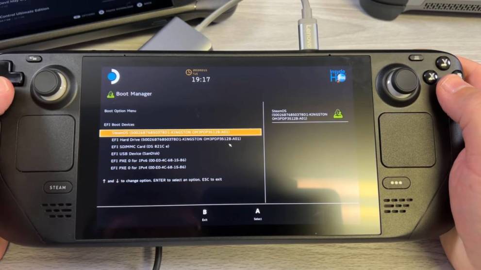 Use the D-Pad control on the Steam deck and select your USB flash drive.