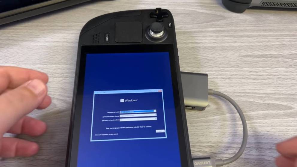 To easily install Windows on your Steam Deck, we recommend connecting a keyboard and a mouse to navigate through the setup. By default, you will see the display in portrait mode, which we will adjust later in this guide.