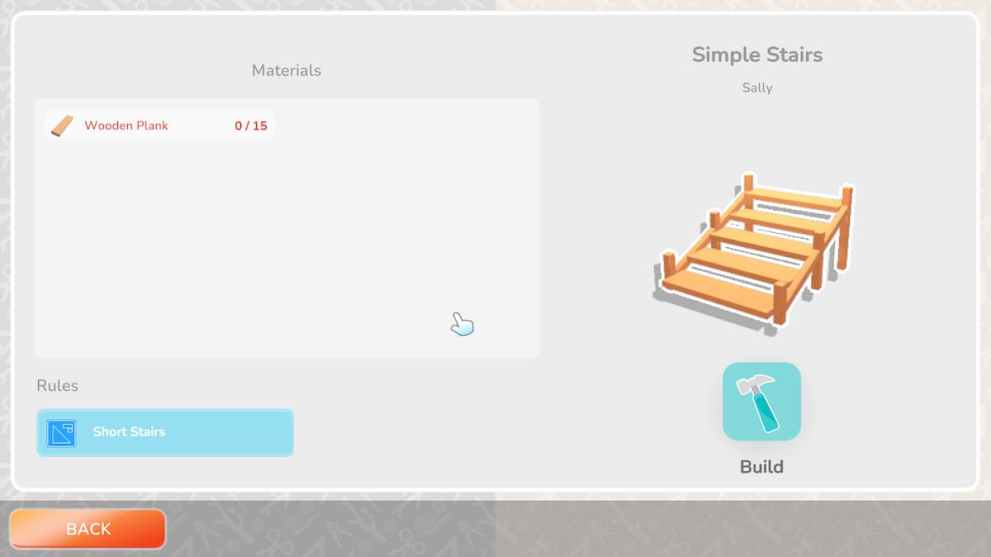 After assigning the new villager to their new home, Rosa explains that you’ll need more room to keep expanding the village. She tells you that you can access the raised area of the meadow with a set of stairs, and then she gives you the design to build it in the workshop.