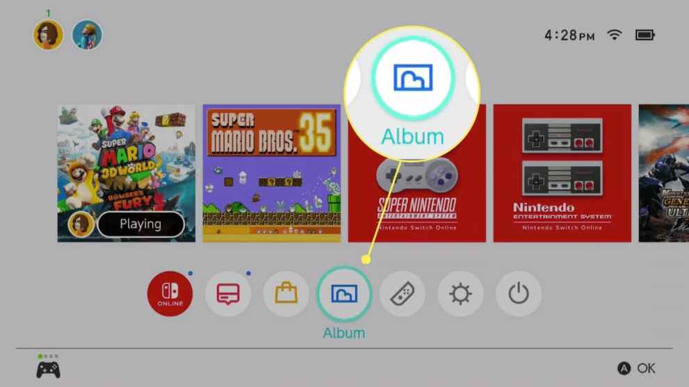 After capturing your favorite Fortnite moment, you can access it by navigating to the Album section. The Album option can be found on the bottom of the Switch’s home screen.
