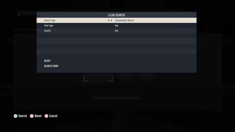 - Search for Consumables in the Club Search function after clicking the left joystick.