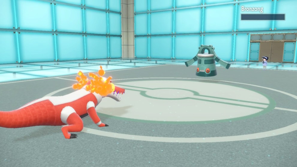 Next up is Bronzong, a Steel and Psychic Type Pokemon. Bronzong is a tricky Pokemon to deal with as it has a powerful ability known as Levitate, which makes it immune to Ground Type moves. Not only that, since it’s part Psychic Type, it also has a resistance to Fighting Type moves. However, as a trade-off, it now has a weakness to Ghost Types, as well as it’s original weakness to Fire. Using a Fire Type like Skeleridge in the image above will be a great option to use in this fight.