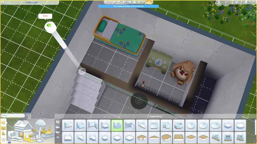 Decorate the den with whatever toys and toddler objects you like. Because you’ve activated the move objects cheat, you can overlap toys to fit more in the tiny space. Hold Alt while moving objects to place them freely instead of snapping to a grid.