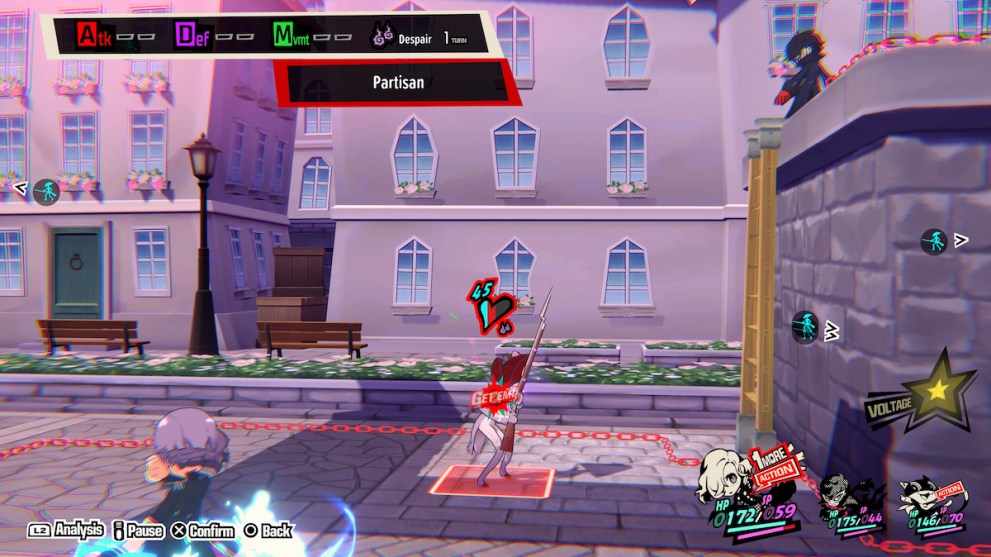 Now that Erina has another One-More, progress further and you’ll see the gunner that Joker attacked over the barricade on the right. This enemy is now without cover but is still unreachable with Erina’s gun. Target this enemy and use Erina’s Partisan ability. This will score you yet another One-More for Erina to continue.