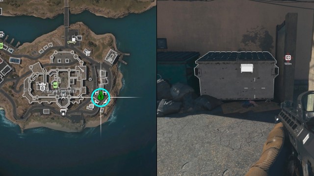 The Dead Drop is identifiable as a white dumpster, familiar to any DMZ players who’ve visited one before. In Al Bagra Fortress, it’s located to the south east of the POI, between two buildings and circled on the map below.
