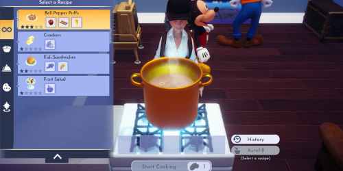 Players can throw in a mixture of items they want to try out in the pot and create meals they can use to replenish their stamina or give away as a gift to Disney characters. In addition, you can look at the Recipes tab for guidance and obtain more of these items as you progress further into the game, especially after you’ve acquired Remy from his cooking realm.