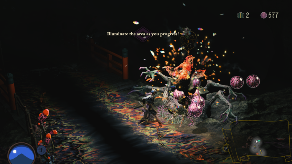 Explore every inch of the village and attack any plant with glowing buds. These drop a few extra Crystals you can spend on assigning roles to any purged Villagers. When night comes the Seethe will enter the village. As you fight them off they’ll also drop Crystals you can either save up or use on your villagers. After completing a stage, an Ominous Presence appears.