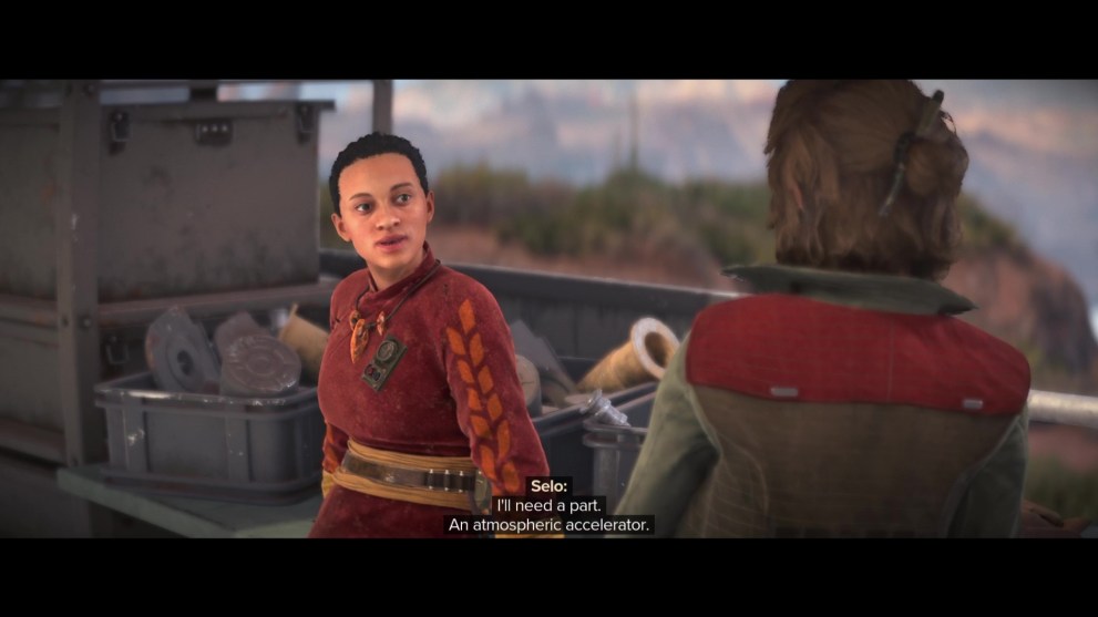 Once you reach Selo’s shop and talk to her, you’ll unlock her namesake quest – “The Mechanic” – where you need to steal an atmospheric accelerator from an Imperial wind harvester to give Kay the wind tunnel-defying boost.