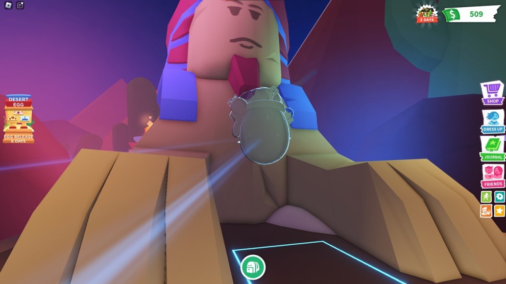If you don’t want to wait for the Desert Egg to release, you can participate in the Sphinx puzzle event to earn a Royal Desert Egg. These are slightly different from the Desert Egg, as every pet will have an increased drop chance. To get started, follow along: