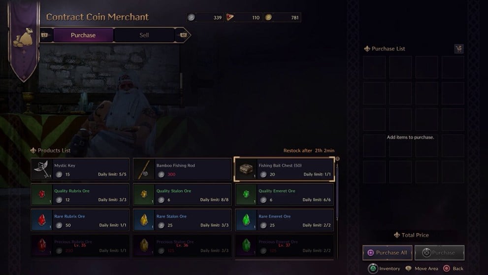 Of course, you need the fishing bait only after you already have a fishing rod. But where is the bait? You can get the most basic kind of Bait, Paste, at the Contract Coin Merchant which you will find in every major town (such as Kastleton). A box of 50 pieces of bait will set you back 30 contract coins. But there is a catch, and no, we are not talking about fish. You will only get one box per day, so you’ll have to make those pieces count.
