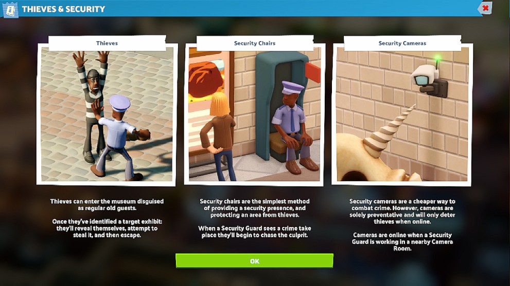 The thieves don’t attempt to steal exhibits one at a time; they often descend upon the museum in one go. Therefore, hire as many security guards as your budget allows. Where possible, raise prices or cut down elsewhere to ensure you can keep them on staff. You’ll need them.