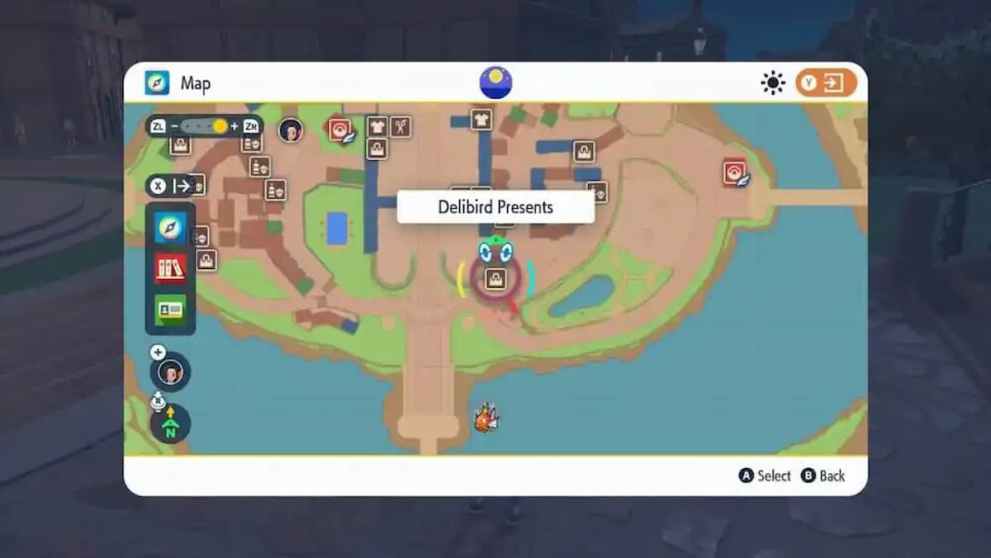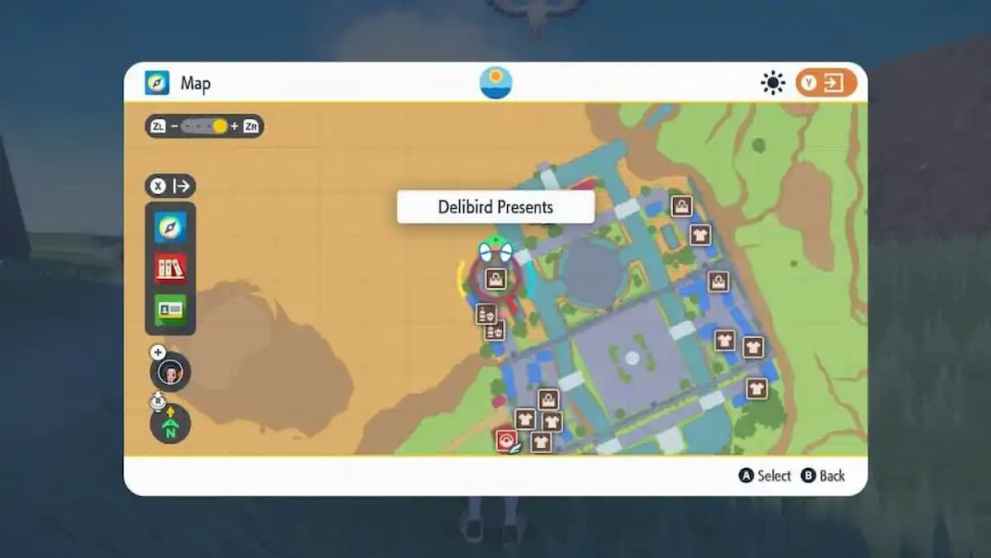 Another option for trainers to find a Leaf Stone is to simply buy one from the Delibird Presents shops that are sporadically located throughout the Paldea region. You’ll need to earn three gym badges for these stones to be available, but once you do, feel free to head on in. We’ll have screenshots of different locations below.