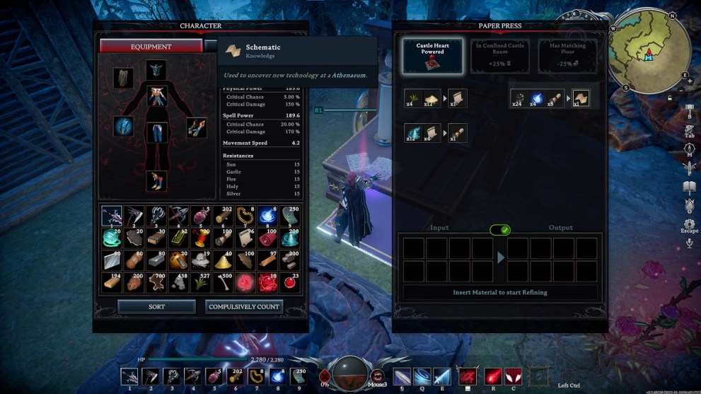 In practice, the Paper Press drastically reduces the time between upgrades. Instead of running into hostile territories to decimate human populations for Paper, Scrolls, and Schematics, you can just make them at home. In other words, you’ll have a much easier time accessing the best weapons in V Rising.