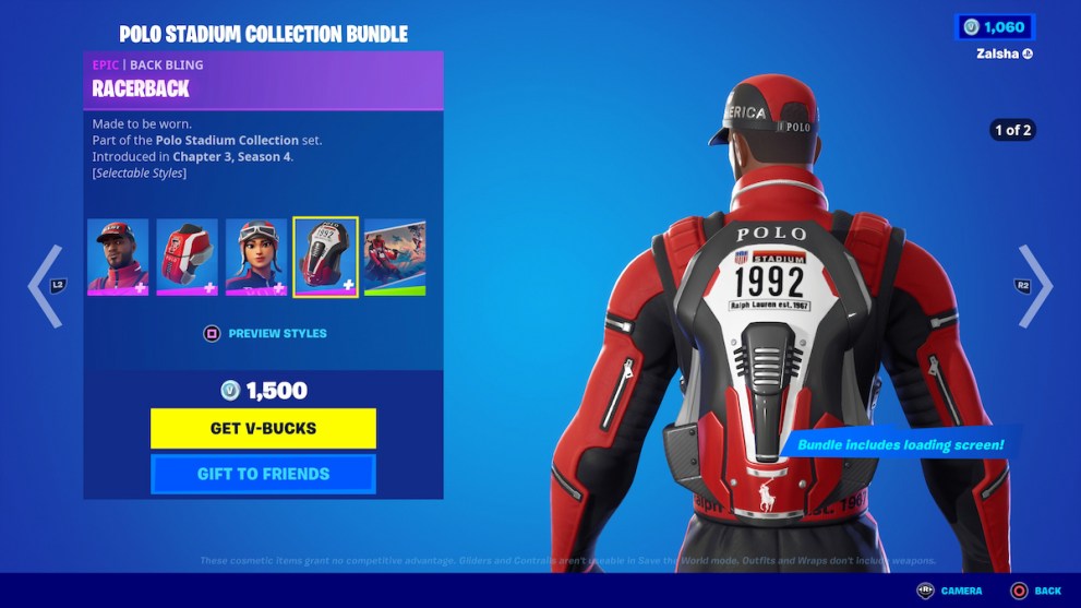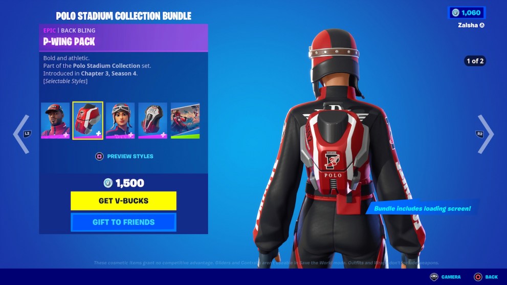The first is the Polo Stadium Collection Bundle which has two Outfits, two matching Back Blings, and a loading screen for 1,500 V-Bucks.