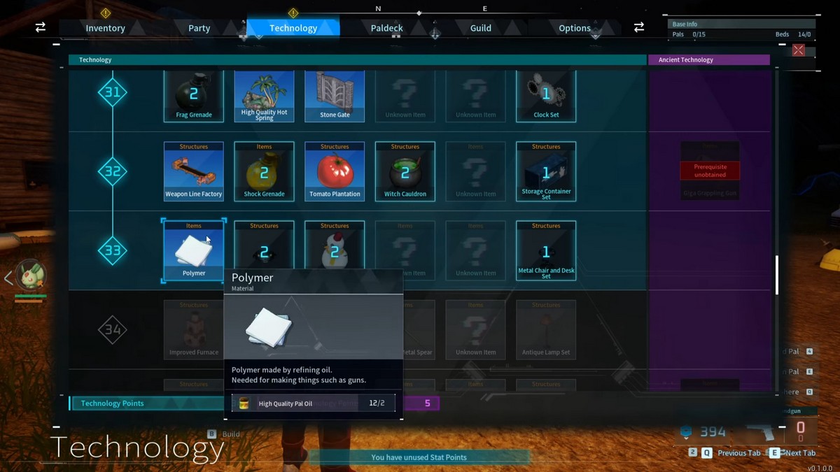 Unlike other resources such as Wood or Stone in Palworld, Polymer is a more complicated resource that needs to be crafted using other materials. Players must first progress to Technology Level 33, and by using your Technology Points, the recipe for this particular resource can be unlocked.