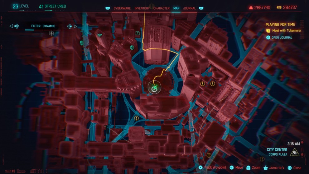Head on over to a fast travel point of your choice and then go to the Arasaka Tower Fast Travel station. Upon arriving at the Tower, you’ll want to head up to the top of Memorial Park at the center of the area, where the holographic koi fish can be seen swimming around.