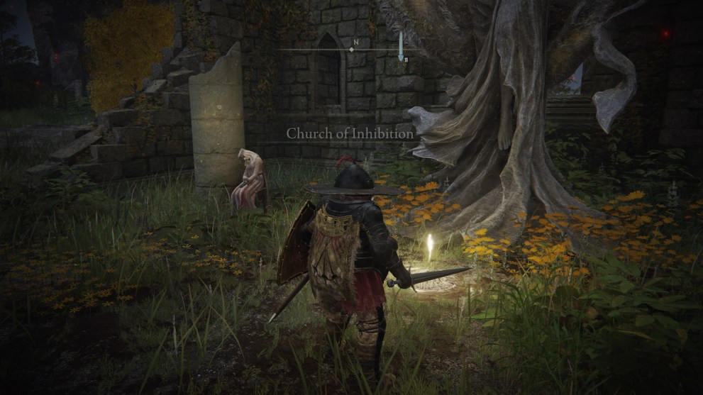 The easiest place to find a dead maiden is far northeast of Rose Church over at the Church of Inhibition Site of Grace. This church is on top of the mountainous plateau overlooking Liurnia Lake down below.