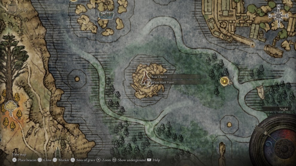 Defeating the boss of Stormveil Castle and speaking with Enia triggers White Mask Varré to move from Limgrave over to Rose Church in Liurnia of the Lakes. Head over to Rose Church now to speak with Varré. Rose Church is just south of Raya Lucaria and west of the Fallen Ruins of the Lake Site of Grace.