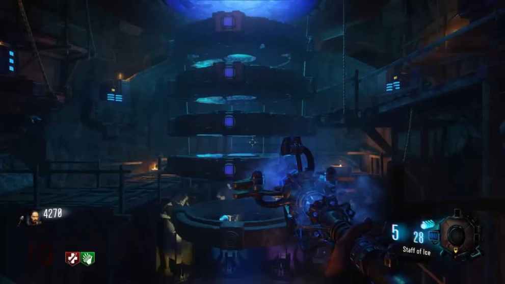 If you have enough powerful weapons, you can place the tool near the previous area where you entered the code for the Ice Staff. While the tool upgrades, you’ll need to eliminate zombies until Samantha tells you that you’ve successfully upgraded it.