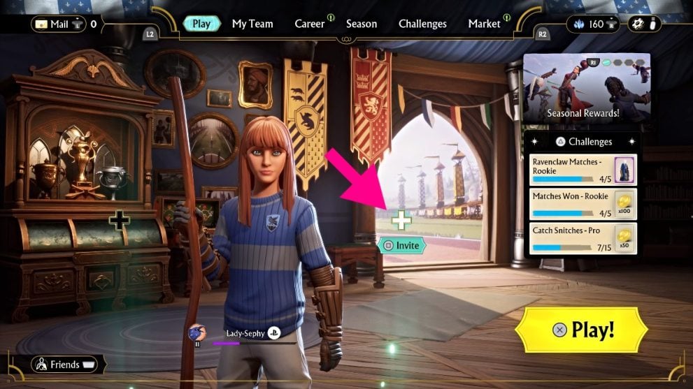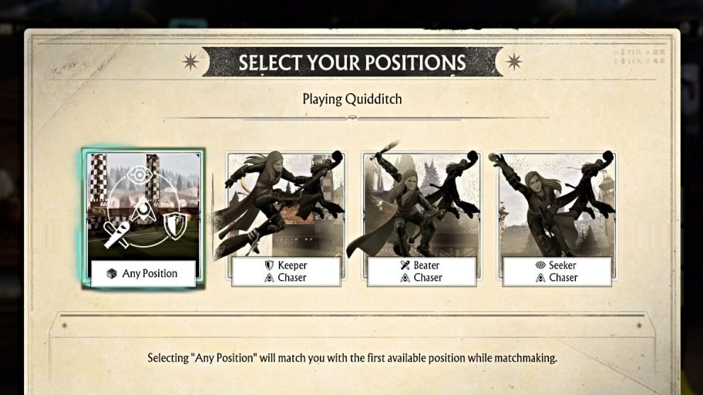 When you and your friends are ready to play, simply hit the big ‘Play’ button at the bottom right of the screen. You’ll be taken to the ‘Select Your Positions’ menu, where your group can assign desired team positions. Once you’ve made your selections, it’s time to hit the Quidditch pitch!
