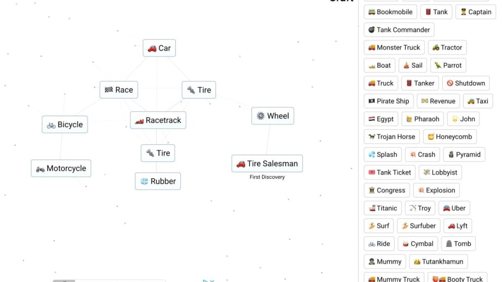 It’s quite a long path, with the most difficult part being getting to tire in the first place. Car is one you’ll stumble across quite early on during Infinite Craft, after finding the likes of engine. From there it’s a battle in itself to reach tire, so fiddle around with combinations involving circle, wheel, and bicycle. You’ll get there eventually!