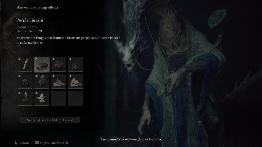 Speak to Chen Loong and you will get an options menu where you can start planting the seeds you have accumulated in your journey so far. They will take a bit of time to grow once you plant them. However, there’s a very good reason to always plant and harvest seeds when possible and we’ll get to it in the next section.