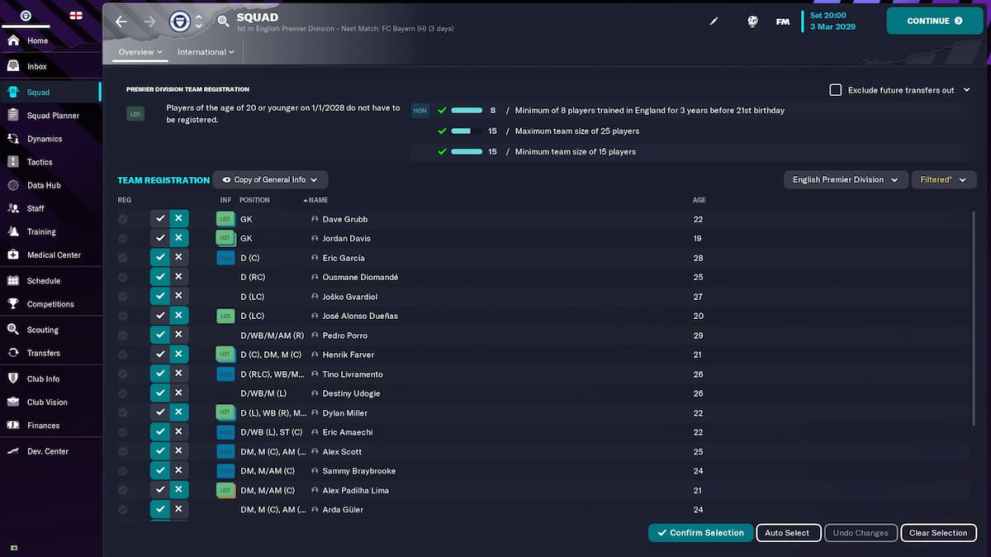 From there, it is a matter of finding the right combination of players to fit within the rules and regulations of your club. Typically these will vary by country, as top leagues in England, France, Germany, Italy, and Spain all have different requirements with regard to homegrown players.
