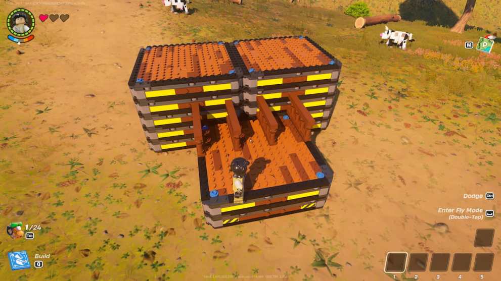 Once the foundation falls, clear the 2 Wood Foundation 01s on the left, and you will be left with an L-shaped wooden construction. This object is now completely independent from the car’s body, and we will use it to steer our LEGO Fortnite car.