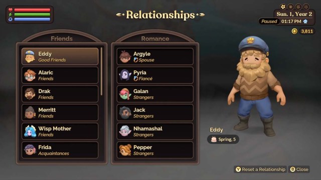 If you want to reset your friendship with any character, you can also do this from the ‘Companions’ menu. Hover over the character you want to reset and select the option to ‘Reset a Relationship’. You can do this on Switch controllers by pressing the Y button. You’ll be given a warning before you finalize the process, and then they’ll be reset to the level of Strangers.