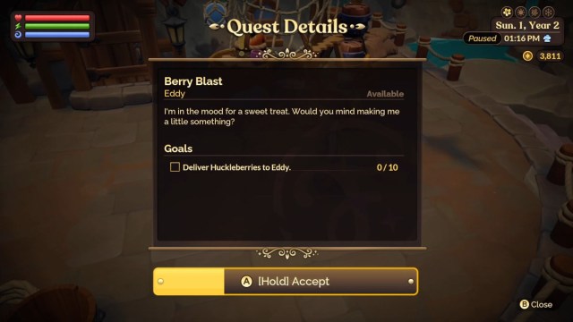 Every day, a random selection of characters that you can befriend in the game will have a friendship quest available. These will require you to find or craft an item or resource that the character wants. Friendship quests only last until the end of the day, so you’ll need to be quick if you want to complete it in time to gain the reward.