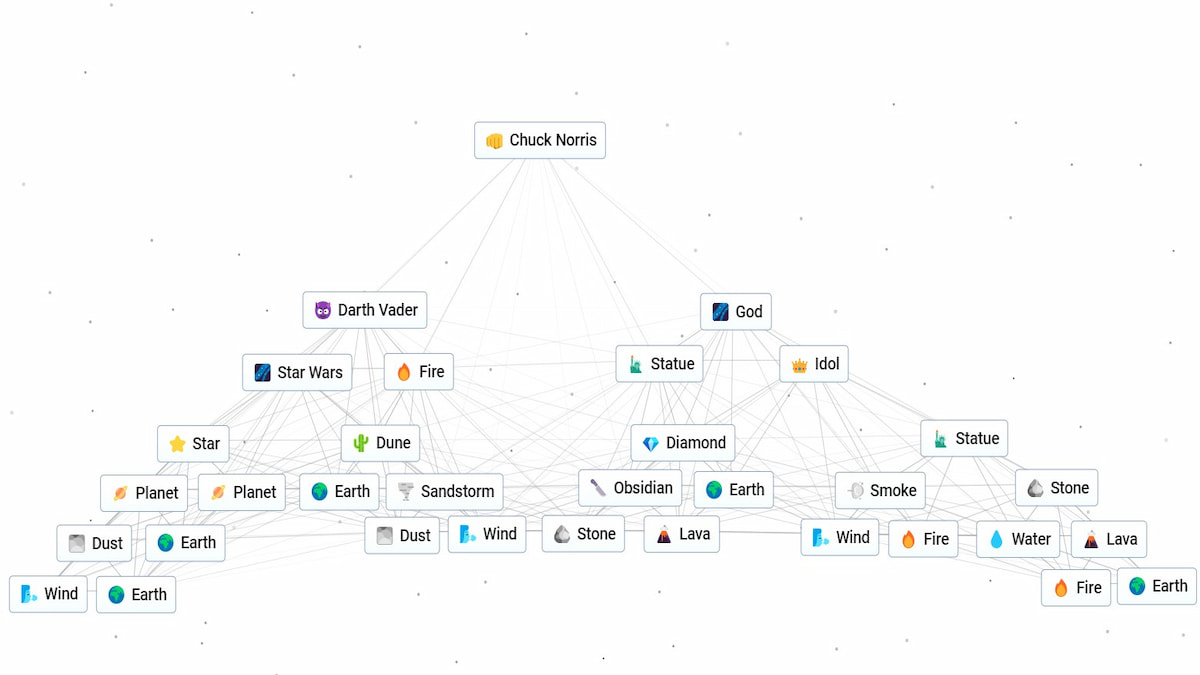 The simplest and probably the most fun way to get Chuck Norris in Infinite Craft is to combine Darth Vader and God. Both recipes are broken down just below, and they are super easy to follow.