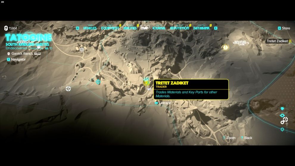 To begin, head to the area around Ubrikkian Trade Tower in Mos Eisley, where two merchants are talking about a treasure hunter. Talk to them to find out that the treasure hunter was asking for directions to the Dune Sea.