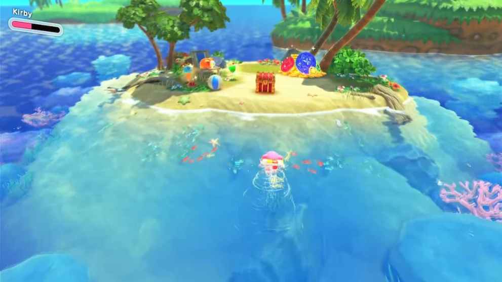 - Swim over to the island, press A next to the treasure chest and you’ll find the Waddle-Dee hidden inside.