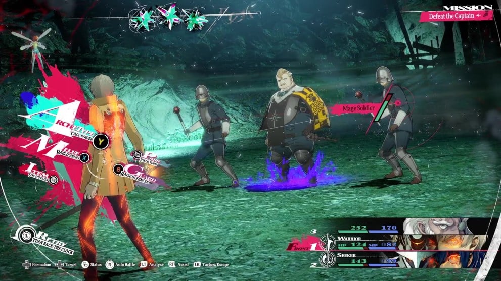 Before you can defeat Captain Klinger in this early boss fight in Metaphor: ReFantazio, you first need to take out the two Mage Soldiers positioned on either side. This is because both soldiers act as support units for Klinger by casting Mage Shield, a stat-buffing attack that increases his Defence.