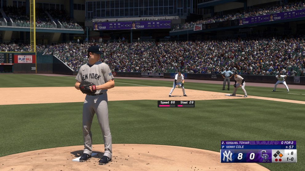 If you’re pitching, you might find players trying to steal bases against you in MLB The Show 24. You’re not defenseless against this, however. When a player is trying to steal a base against you, you can try and catch them off-guard by throwing the ball to the base they’re on.