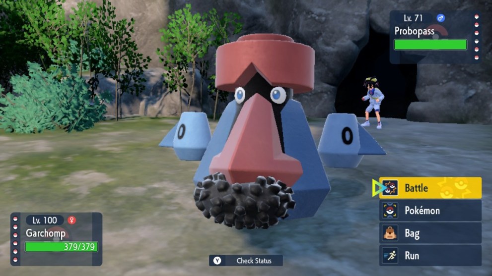 Depending on who you used against Shiftry, Kieran’s next member is a Level 71 Probopass. Probopass is a Steel and Rock type Pokemon with the Sturdy ability, preventing it from being one-hit KO’d. Unless you have an over-prepared team, this shouldn’t be a huge factor for you. What does matter is Probopass’s annoying Steel and Rock typing, making it a defensive wall against most Pokemon. To counter this, use Fighting, Ground, or Water type moves to chip away at its defenses until it goes down.