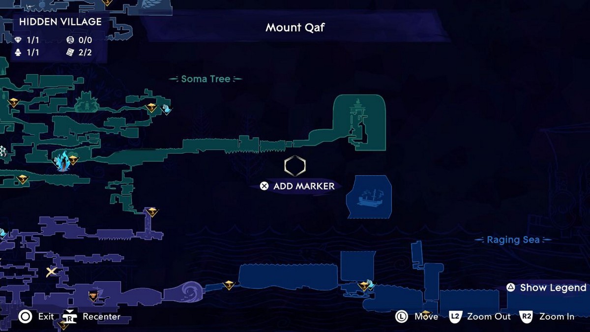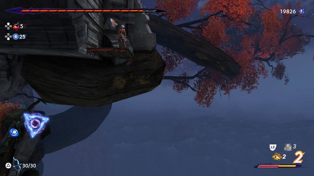 Now, fast travel to the Soma Tree location on the map, and start making your way to the right. Avoid or defeat the enemies along the way, and use the Fabric of Time to manoeuvre past the broken walls and dangerous spikes. Hitting the purple spikes is fine, but the wooden ones will send Sargon back to a safe spot if you fall.