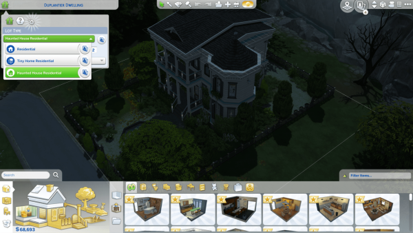 If you’re wondering how to place a brand new lot as a Haunted House Residential lot, it should ask you what kind of lot you’d like to place any house as (this is where you can select Haunted House Residential).