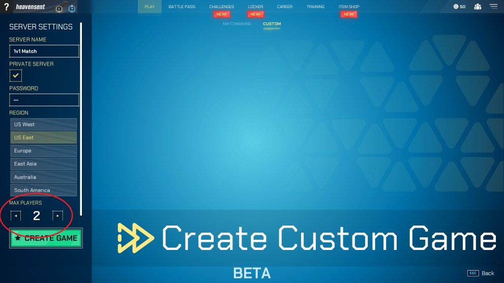 1. From the main menu, hit the Play button, select ‘Custom,’ then hit ‘Create.’