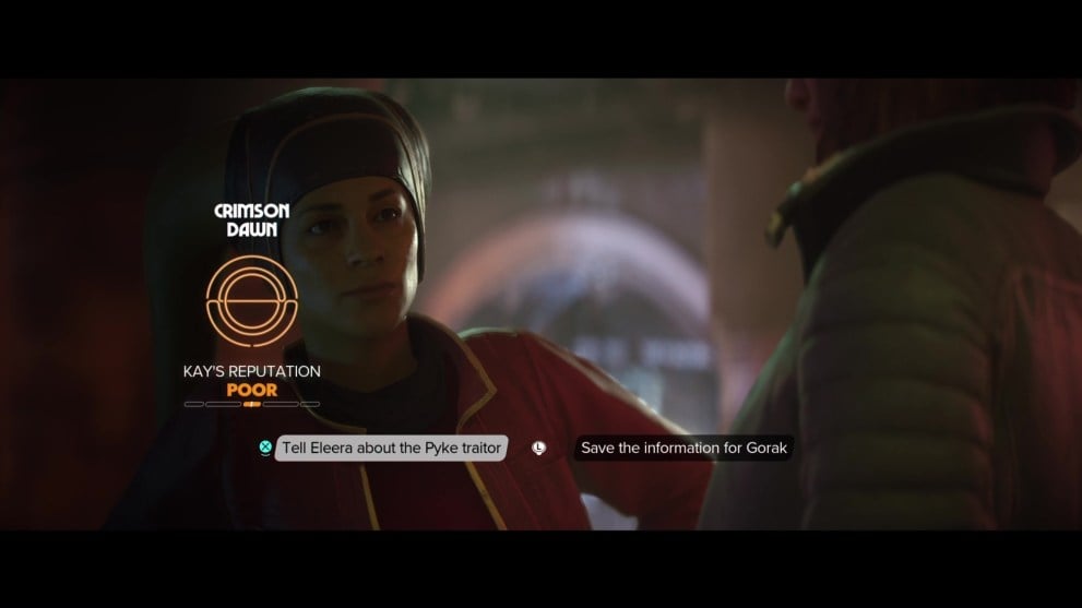 Outlaws gives you plenty of choices that affect your reputation with the underworld’s criminal syndicates, and this first decision is a sampler of that. So, should you tell Crimson Dawn’s Eleera or Gorak about the Pyke traitor in Star Wars Outlaws?