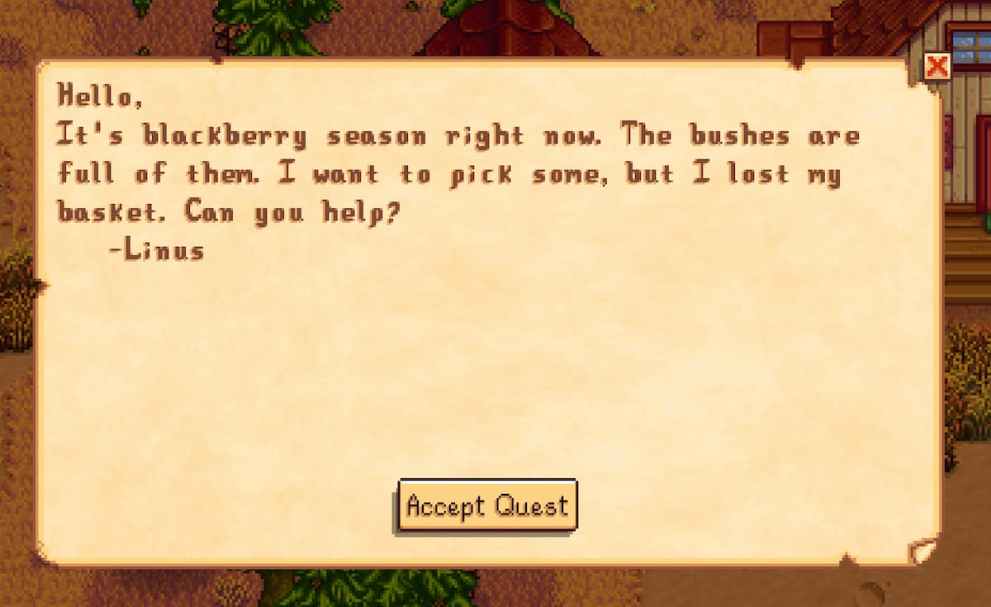 Stardew Valley throws random quests at you to complete so that you can have a respite between the banalities of day to day farm life. One of these is from Linus, the Pelican Town homeless person that lost his blackberry basket. You’ll have that basket back for him in no time. Here’s where Linus’ basket is in Stardew Valley.