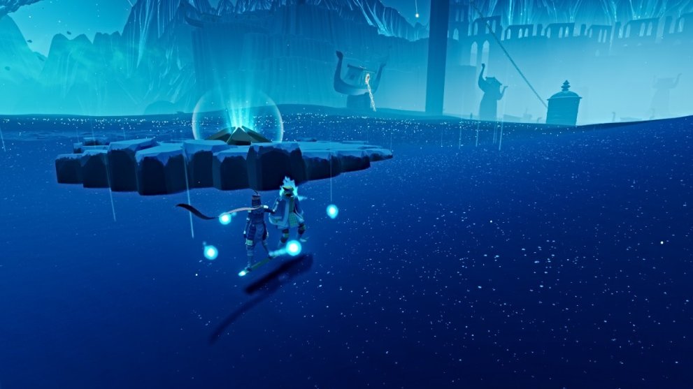 Once done, use the jellyfish platforms that spawn to reach the upper deck, where a water orb will be. Activate it, and this will restore the surrounding area and manifest the next section of the stairwell that leads to the level’s exit.