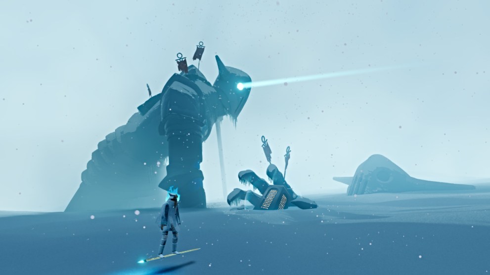 Note that Sword of the Sea does not feature any alternate difficulties. The game is also aesthetically very minimalist when it comes to hinting at objectives and things to interact with. Rather than a HUD that provides icons or cursors, it’s up to you to seek out landmarks and collectibles based on visual cues.
