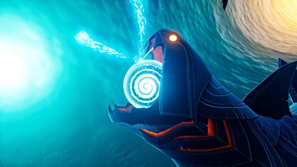 Soon, the dolphin you allied with in the Forbidden Valley will join the fight. Repel the fireballs from Tornamun until you’re back on the water. Repeat the process until the shark from the Frozen Drifts joins next. Again, repel Tornamun’s fireball attacks, and soon another cutscene occurs.